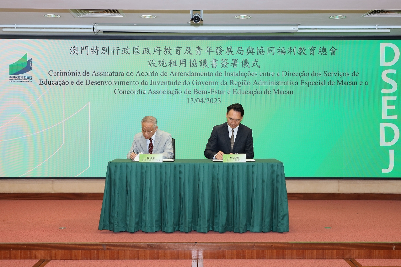 協同福利教育總會設施租用協議書的簽署儀式於2023年4月13日在教育及青年發展局舉行,根據第23/2023號社會文化司司長批示授予之權力,教青局局長龔志明代表特區政府與協同福利教育總會代表葉培煇理事會秘書簽署相關協議。
