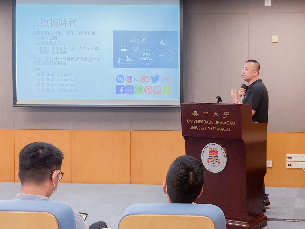澳門大學今(18)日於大學展館演講廳舉行“澳大學人研究講壇”第十二講,由社會科學學院教授蔡天驥以“大數據時代,社會科學家在做什麼?”為題分享其研究成果,現場座無虛席,另外有不少師生以線上形式參與。