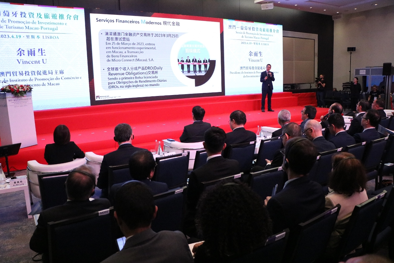 作為特區政府訪葡行程之專題經貿旅遊推介活動,“澳門—葡萄牙投資及旅遊推介會”在葡萄牙當地時間4月19日舉行。澳門特別行政區行政長官賀一誠、中華人民共和國駐葡萄牙共和國大使趙本堂、澳門特別行政區政府經濟財政司司長李偉農、運輸工務司司長羅立文,橫琴粵澳深度合作區執行委員會副主任聶新平、蘇崑,澳門特別行政區政府旅遊局局長文綺華、澳門貿易投資促進局主席余雨生等出席。