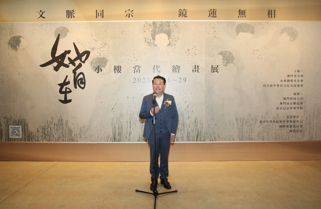 由澳門基金會、永利關愛基金會、南京海外教育文化交流協會主辦,澳門科技大學、澳門南京聯誼會、南京信息管理學院協辦,北京中華世紀壇世界藝術中心、國際奧藝委員會、胡潤百富支持的《文脈同宗 鏡蓮無相──“她自在”小樓當代繪畫展》已於2023年4月26日(星期三)在澳門路氹體育館大馬路永利皇宮永利藝術館揭幕。