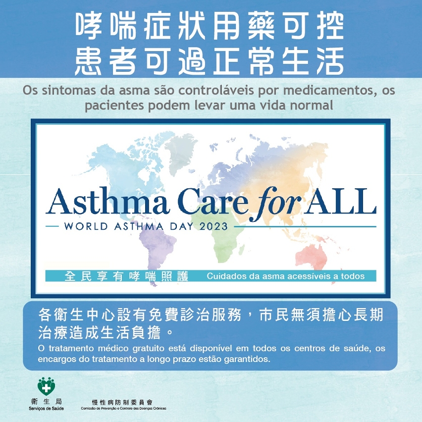 衛生局表示,哮喘急性發作時會出現咳嗽、胸悶、氣喘甚至呼吸困難,嚴重可導致死亡,哮喘已被列入《慢性非傳染性疾病預防和控制的全球行動計劃》和《聯合國2030年可持續發展議程》,而其中的《慢性非傳染性疾病預防和控制的全球行動計劃》提及,“全民健康覆蓋的重要性,特別要通過初級衛生保健和社會保障機制實視全民覆蓋,以便向所有人尤其最貧窮階層,提供獲取衛生服務的機會”、“必須確保這些服務的使用不會讓使用者陷入經濟困境”。事實上,許多國家哮喘患者獲取哮喘藥物仍是難題,世界衛生組織資料顯示,2019年在低收入國家初級公共衛生保健設施中,僅一半哮喘患者使用支氣管擴張劑,不到五分之一患者使用類固醇吸入劑。為此,衛生局一直致力為本澳居民提供全面初級醫療保健服務,針對慢性疾病儘量做到早發現、早治療,及治療藥物不會對居民造成經濟負擔,甚至大部分治療藥物也在醫療保障範圍,令患者無須額外支付高昂的藥物治療費用;同時,積極增強公眾對哮喘防治和自我管理的認知,減少對哮喘用藥的誤解。