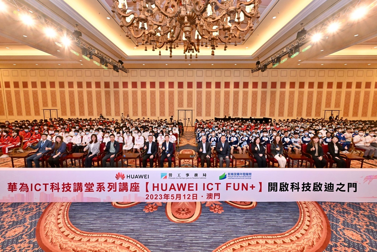 為讓中學生有更多機會接觸高新科技產業,勞工事務局聯同教育及青年發展局與華為服務(香港)有限公司-澳門分公司(下稱“華為澳門”)合作,今(12)日上午假澳門路氹威尼斯人會議展覽中心舉辦“華為ICT科技講堂系列講堂”,本澳15間中學,接近600名中學師生參加活動。