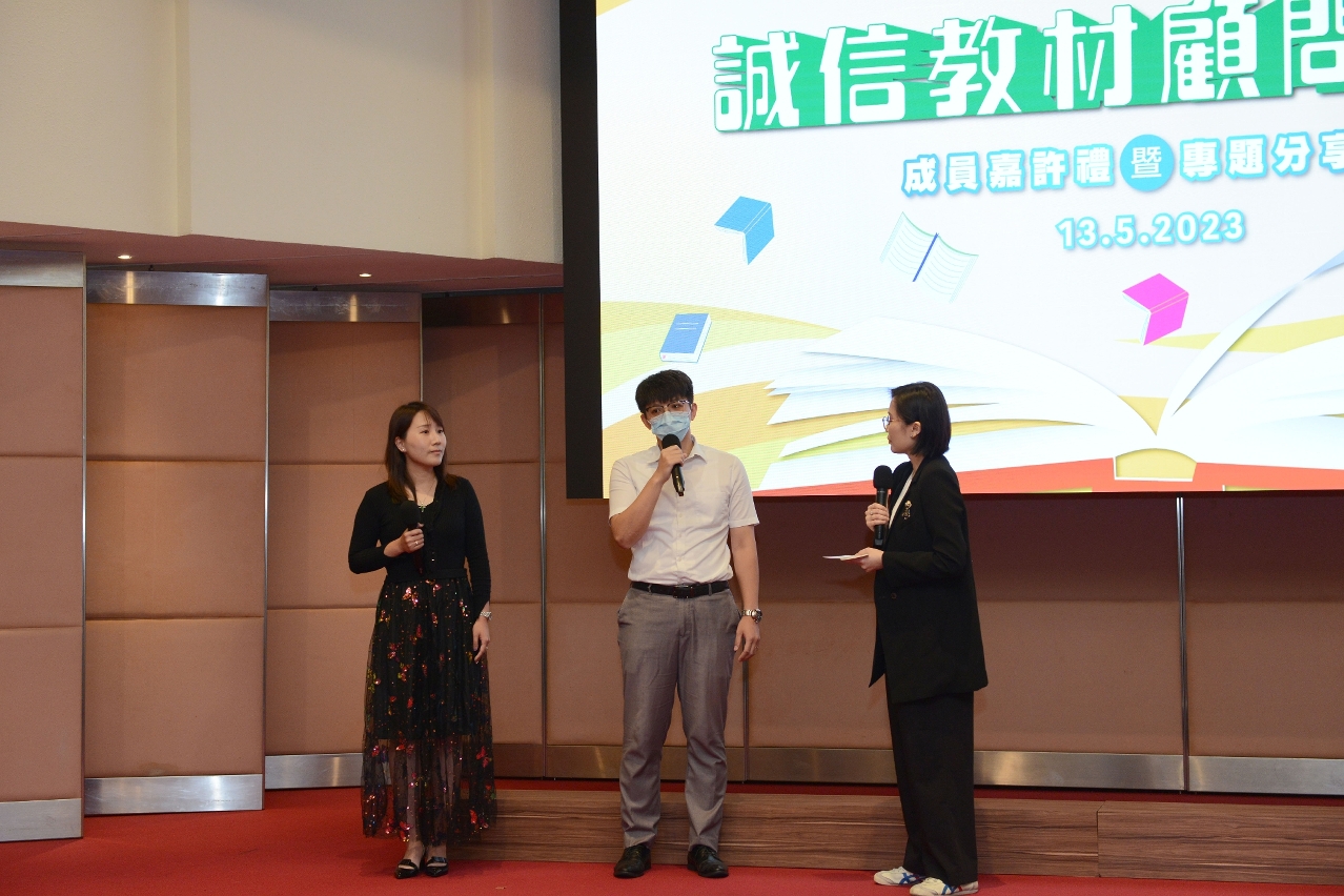 嘉許禮上,於2021/2022學年為廉署編寫、審閱和試教教案的小組成員獲頒發感謝狀。獲嘉許的成員代表還即場分享了誠信教學設計的心得。其後,顧問小組專家成員代表、中華教育會副理事長陳志峰以“AI新時代下之青少年誠信教育――機遇與挑戰”為題,與出席的教育界人士進行探討及交流。
