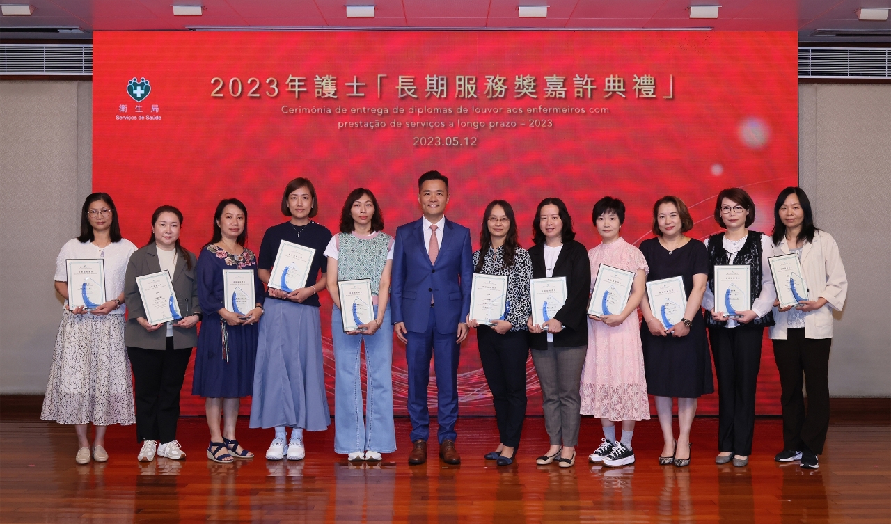 藉著2023年度國際護士節,衛生局於5月12和13日舉辦了“長期服務獎嘉許典禮”和“國際護士節護理專業研討會”慶祝活動。中央人民政府駐澳門特別行政區聯絡辦公室宣傳文化部田小平副部長,衛生局羅奕龍局長、郭昌宇副局長、鄭成業副局長、陳永華副局長等共同出席了“長期服務獎嘉許典禮”並擔任頒奬嘉賓,嘉許服務滿20年的56位護士及服務滿30年的22位護士,以示特區政府肯定和讚揚他們為護理工作作出的貢獻。
