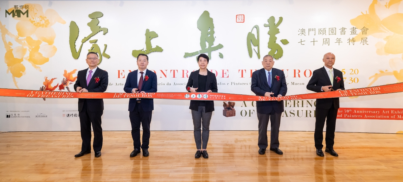 文化局轄下澳門藝術博物館主辦、澳門頤園書畫會協辦的“濠上集勝——澳門頤園書畫會七十周年特展”今日(5月19日)開幕,文化局局長梁惠敏、中央人民政府駐澳門特別行政區聯絡辦公室宣傳文化部王惠杰處長、澳門頤園書畫會榮譽會長崔世昌及會長崔世平、澳門美術協會會長陸曦等出席主禮,場面熱鬧。