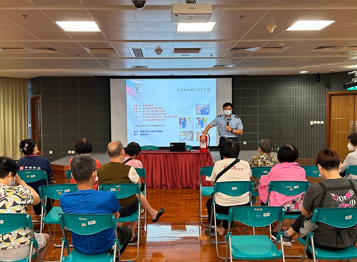 講座於五月二十四日在下環活動中心舉行。消防局代表於講座上介紹多項防火應急安全知識,如離開時應關閉所有用電設備、保持周邊疏散通道暢通、切勿儲放易燃物等,提醒人員應正確使用電器,定期保養維護用電設備等。