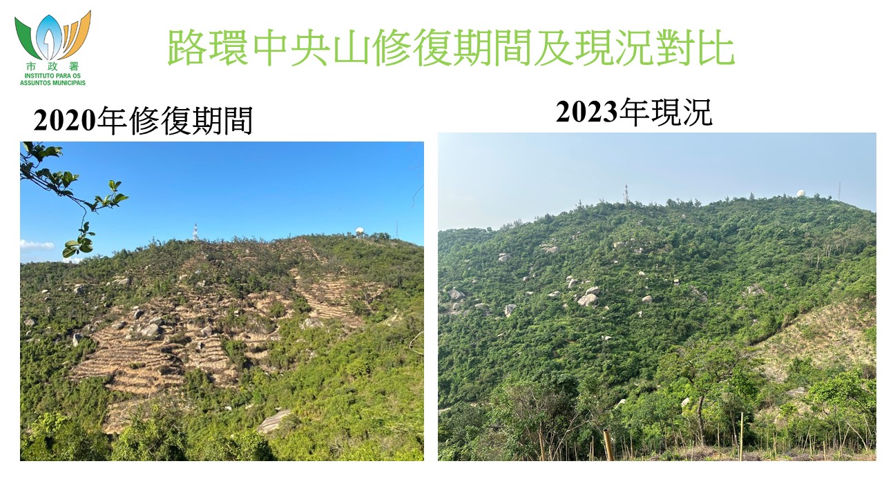 為恢復山林生態環境,市政署在廣東省林業局支持下,聯同廣東省林業科學研究院專家組因應本澳山林特點,訂定修復及優化山林生態的原則、計劃。山林修復承接公司必須依循市政署和專家組製定的修復計劃,按照保留原有樹種、清除藤蔓、開挖樹穴、施肥及回填土壤、苗木消毒及種植、護理六個作業步驟進行修復和種植,一旦涉及移除山林樹木,必須嚴格遵循僅移除枯樹、病危樹、入侵植物三大原則,市政署聯同專家組持續監察修復成效。