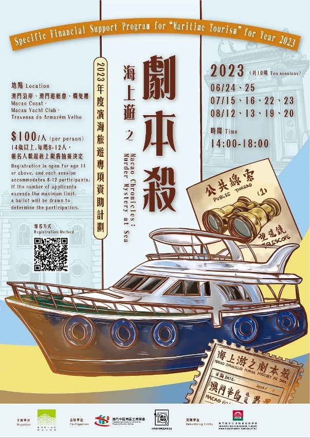 於6月24日至8月20日期間進行的“海上遊之劇本殺”共有10場,每場8至12人參與,劇本以澳門十五世紀末為背景,參加者換裝後通過角色扮演遊戲配以海上遊的視覺感受,探索澳門遊艇會、澳門沿岸及爛鬼樓一帶的景觀及人文風情。