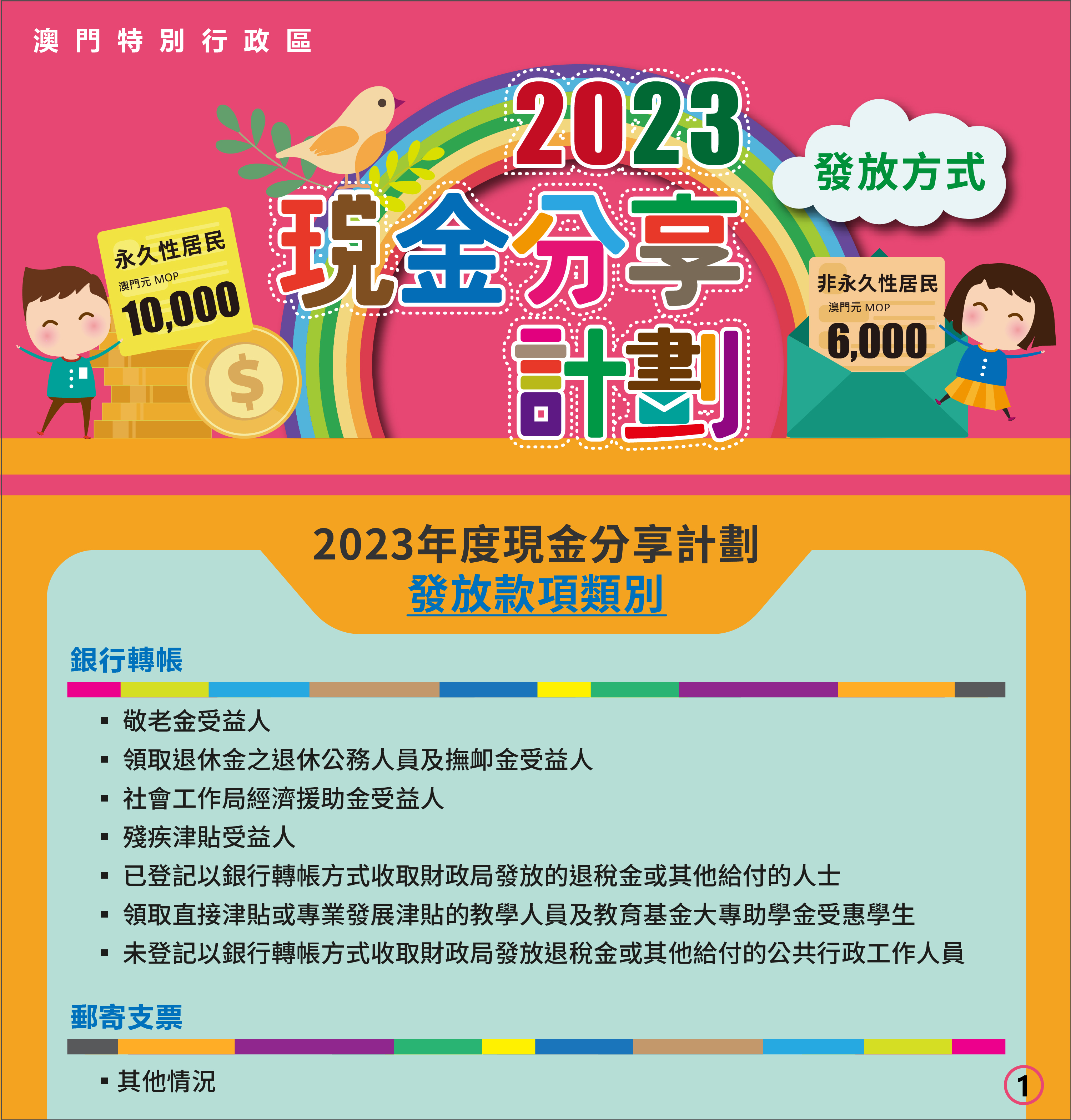 其餘合資格的澳門特別行政區居民,則通過郵寄方式寄送劃線支票。其中: