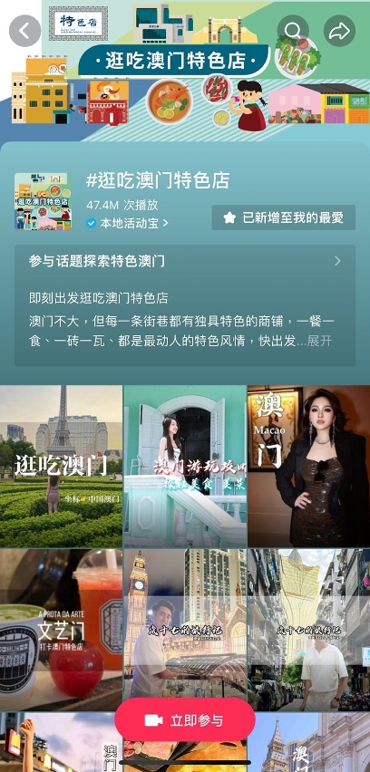 活動在抖音平台發起話題“逛吃澳門特色店”,聚合網紅達人創作的短視頻內容,進一步增大網絡流量。標籤“逛吃澳門特色店”話題的影片自6月中旬發起至今近一個月,累計錄得超過4,740萬次播放量,反映澳門特色店話題深受網民歡迎,相信有助吸引旅客深入澳門各區探店尋味。