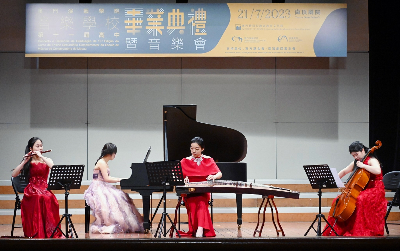 文化局轄下澳門演藝學院音樂學校於7月21日在崗頂劇院舉行“第十一屆高中畢業典禮暨音樂會”,社會各界人土及眾家長蒞臨支持祝賀。