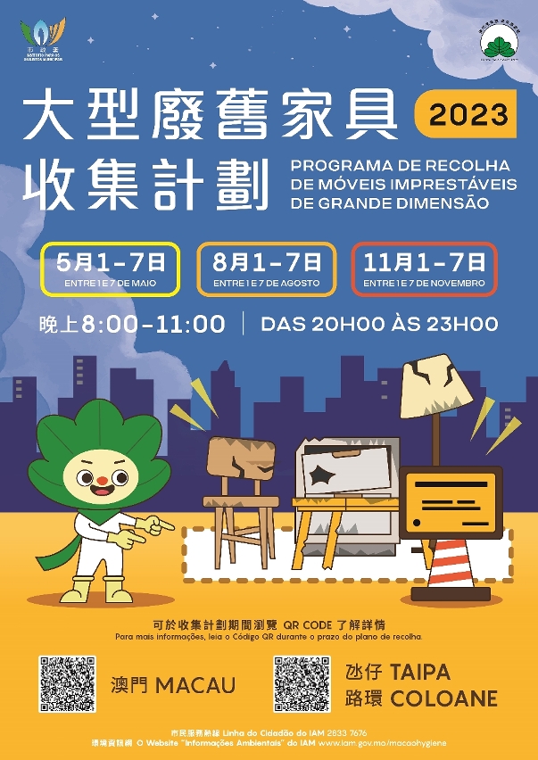 巿民可於八月一日至七日晚上八時至十一時,將廢舊家具棄置於收集站內。收集站的具體位置可掃瞄海報二維碼,或於市政署網站及微信帳號查詢。各收集站均設有告示牌,供市民辨別。為免垃圾堆積,市政署將協調外判營辦商於設置收集站期間,加派人員及車輛收集站內的廢舊家具,並會於當晚全部清運處理。