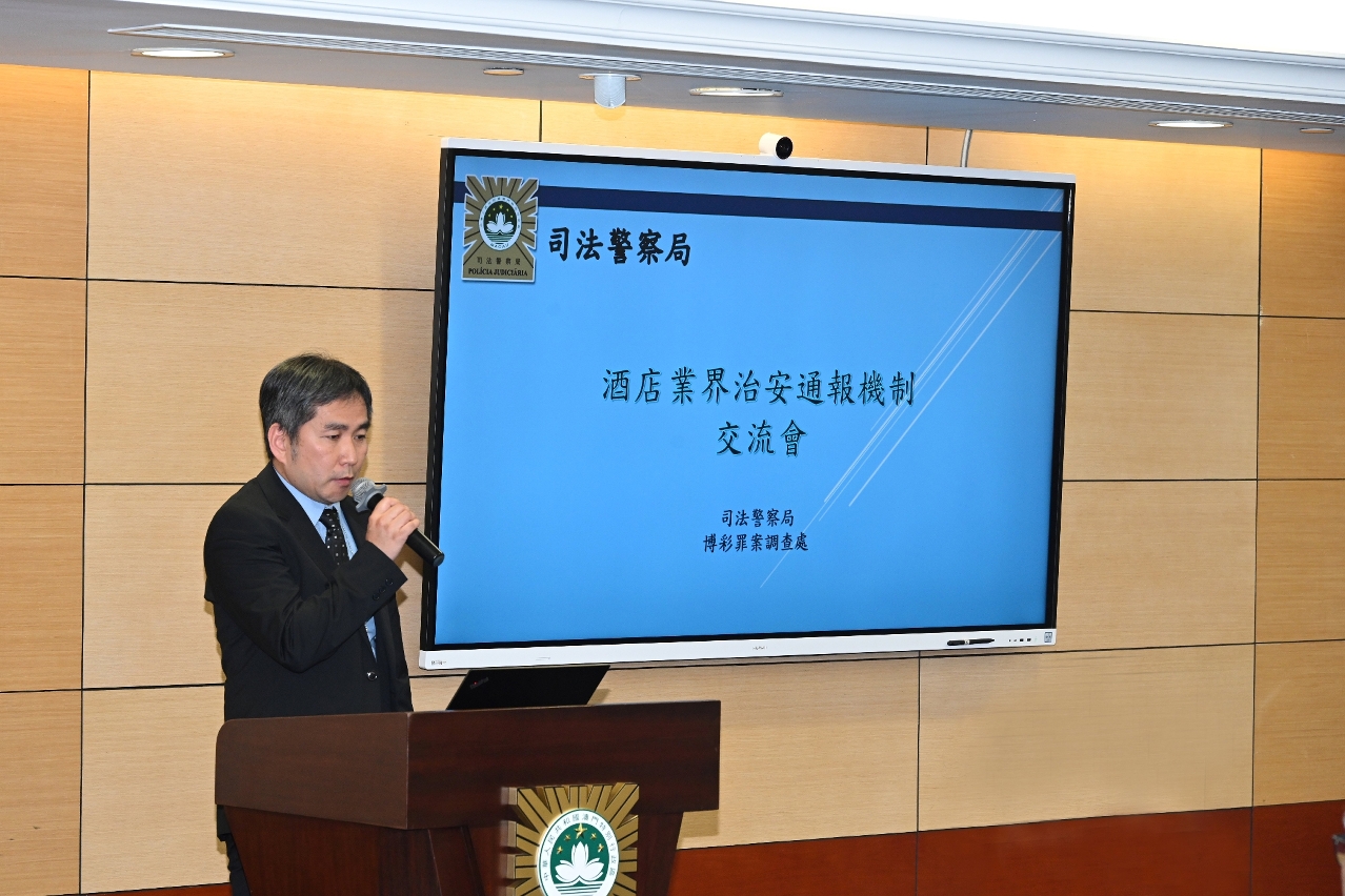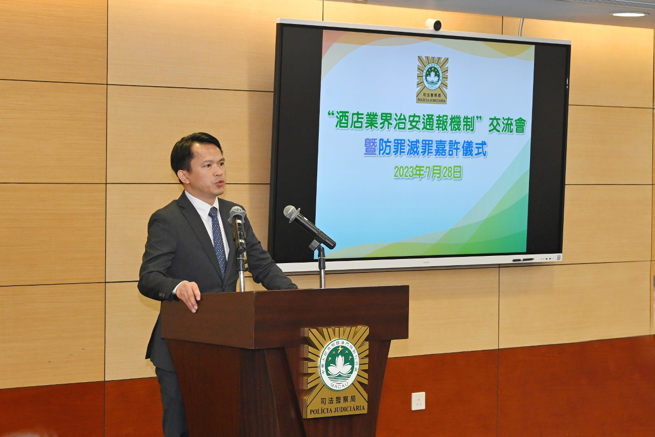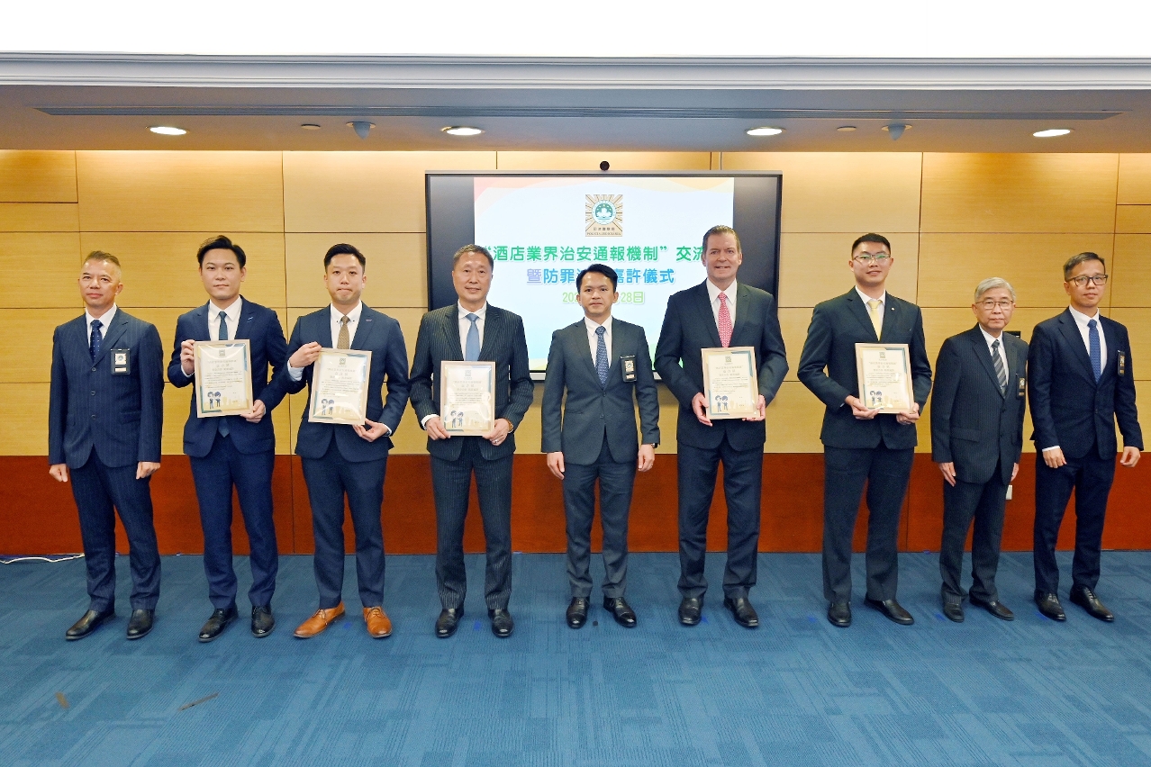 因應今年來澳旅客急增,各旅遊景點及酒店設施人流暢旺,與旅遊博彩行業相關的違法犯罪情況有所回升,司法警察局舉行“酒店業界治安通報機制”交流會暨防罪滅罪嘉許儀式,與業界代表就持續優化現有通報機制、提升前線從業員的防罪意識和能力、加強警民合作防範罪案等議題進行探討交流。會上,司警局向積極協助執法工作的5間酒店頒發嘉許狀。