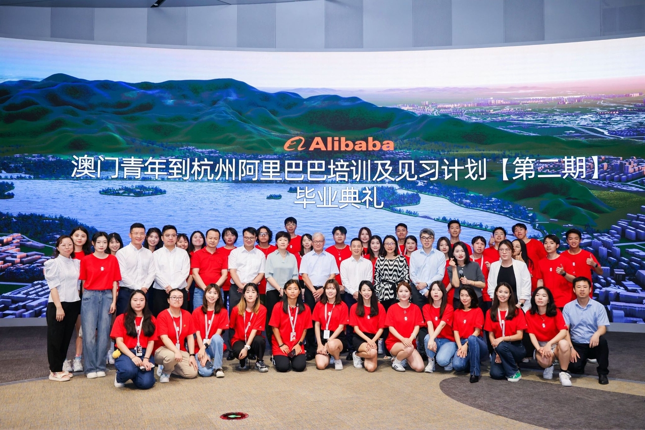 勞工事務局與阿里巴巴集團合辦第二期“澳門青年到杭州阿里巴巴培訓及見習計劃”,參加第二期見習的34名澳門青年已完成為期八周的見習培訓,畢業禮已於8月3日在杭州阿里巴巴總部舉行。