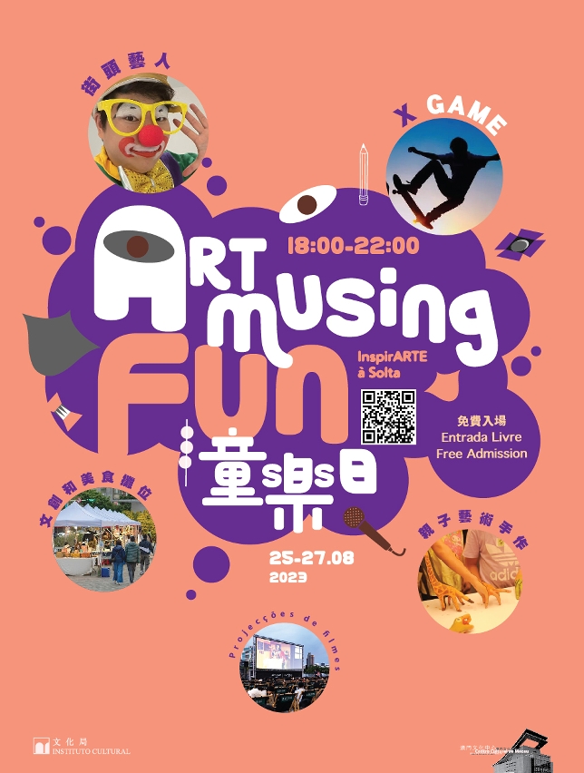 為讓市民旅客感受不一樣的戶外親子藝術體驗,文化局將於8月25日、26及27日一連三日下午6時至晚上10時於澳門文化中心廣場舉行《ARTmusing童樂日》藝術嘉年華,設有表演項目、文創和美食攤位、戶外電影播放、X Game活動區等不同活動,歡迎公眾到場參與,以藝術和笑聲歡送暑假。