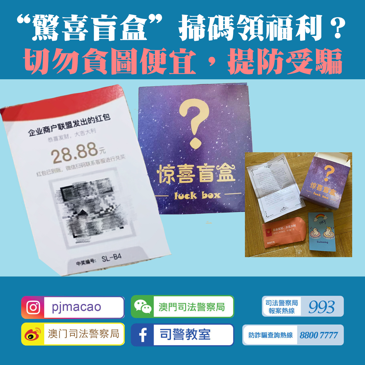 • 司警局呼籲市民提防盲盒掃碼領福利騙局