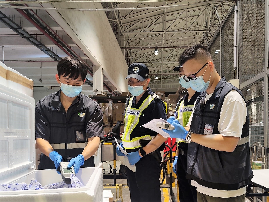 第134/2023號行政長官批示今(24日)起生效,市政署聯同澳門海關今日(8月24日)於機場貨運站展開聯合行動,對來自日本的進口食品貨物進行全面輻射水平檢測,以確保進口本澳的食品安全,同時嚴防源自福島等共十個都縣區的鮮活食品、動物源性食品、海鹽及海藻流入,保障居民食用安全與健康。