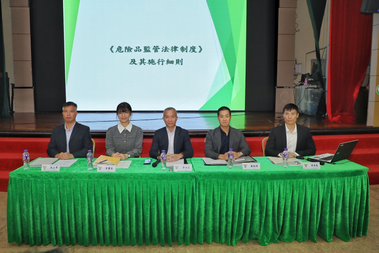 為加深社會各界對第12/2022號法律《危險品監管法律制度》及相關補充規範的認識及瞭解,消防局持續為機構、業界、坊會團體及相關持份者等舉辦講解會,主要提醒與會者新法律已正式生效實施,並重點講解其配套補充規範及行政長官批示、危險品用戶的義務、危險品的分類、以及危險品的豁免量等,以便社會各界更好地履行相關職責及義務。
