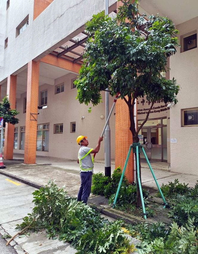 市政署已有序安排疏剪樹木濃密的樹冠,除去病枝、枯枝和結構撕裂的樹枝,以減輕樹冠重量及受風面積,降低樹木在暴風雨時倒塌的機會。此外,亦會檢查樹木支撐架及鋪設保護格柵覆蓋泥土。