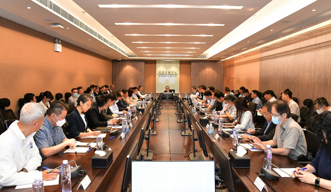 會上,各民防架構成員按自身職能,匯報了各項內部應對工作,包括﹕已做好疏散撤離的準備工作,並提前與需輔助人士取得聯繫,以便在有需要時,為他們提供即時的協助等﹔避險中心的物資和人員輪值已作安排﹔亦向學校發出暫停開學的消息﹔與酒店業界加強溝通,確保在澳旅客能獲取最新的民防的資訊﹔另外,就颱風期間的電力供應、公共交通、航班、病患安排、地下停車場封閉、海上船隻安置和建築設施鞏固等措施亦已作出溝通和備好預案。