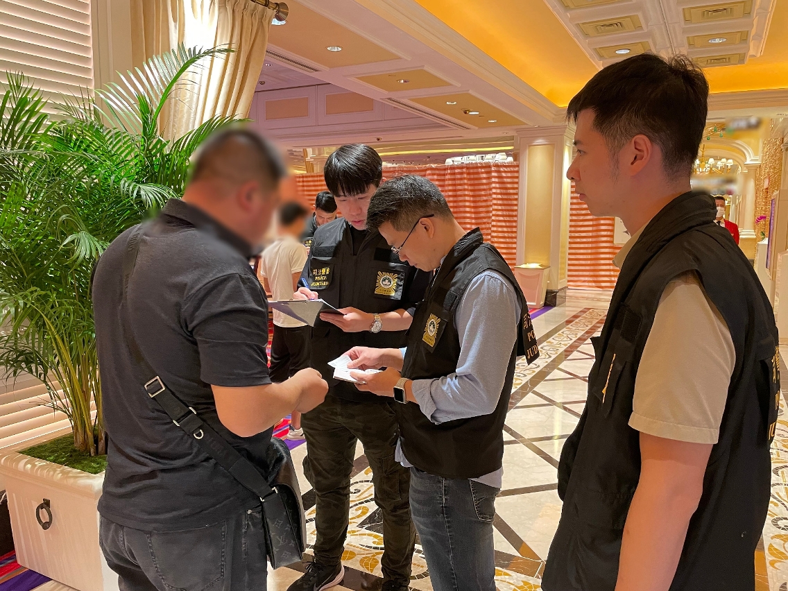 於 2023年9月5日早上11時至下午4時,司警局共派出 25名刑事偵查人員前往本澳多區娛樂場及周邊進行巡查。行動中合共截查了132人(78男54女),當中發現4名人士(2男1女為內地人士,1名男子為本澳居民)從事非法兌換貨幣活動(即俗稱“換錢黨”)。上述4人被帶返司警局進行身份認別程序及調查後,並未發現涉及其他犯罪活動,已將3名內地人士移送予治安警察局出入境管制廳處理,其餘1名本澳居民准予自行離開。