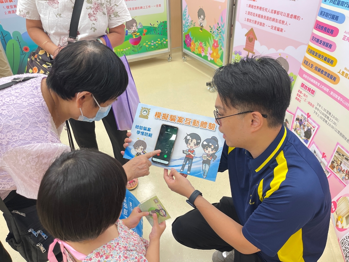 此外,司警局人員還聯同“司警局大廈防罪之友”成員於現場向居民進行講解,提醒他們對陌生人的交友邀請應保持警惕,不要輕信各種網絡投資或招聘訊息;在任何情況下都不要向陌生人透露個人資料,進行轉帳或匯款;若懷疑接到詐騙電話,應緊記防騙三原則:“堅決拒絶”、“馬上掛線”、“主動報案──致電司警局防詐騙查詢熱線8800 7777或報案熱線993求助”。同時,司警局還設置模擬騙案和匯款提示的互動體驗活動,讓居民可以親身體驗騙徒作案的過程,從而增強防騙警覺和記憶。宣傳期間,在社團協助推動下,共約有11,000名居民前來觀看防騙宣傳教育展板。