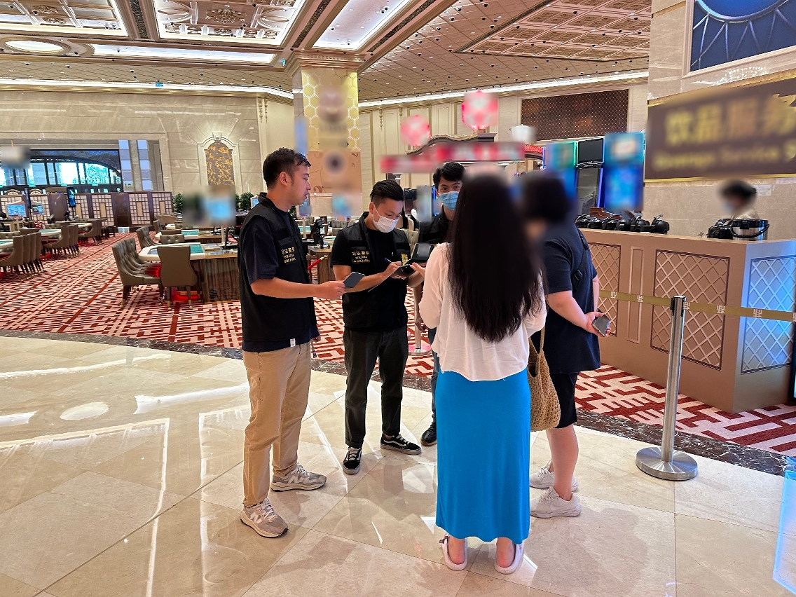 於 9月13日下午3時至晚上9時,司警局共派出 25名刑事偵查人員前往路氹城區娛樂場及周邊進行巡查。行動中合共截查了111名人士(81男30女),當中發現4名人士(3男名子為內地人士,1名男子為本澳居民)從事非法兌換貨幣活動(即俗稱“換錢黨”);另截獲1名逾期逗留的內地男子,並在其身上搜獲一張懷疑偽造出入境小票。