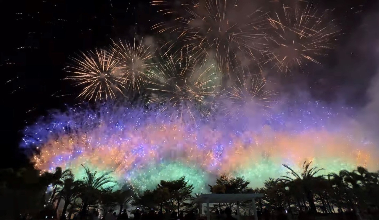 以“炫彩日本”為題的煙花於晚上9時40分上演,由來自日本的株式会社丸玉屋小勝煙火店呈獻。演出以盛載日本動畫師的精神和細膩情感的動畫樂曲配搭美麗花火,展現煙花和動畫兩大文化藝術的動人交匯。