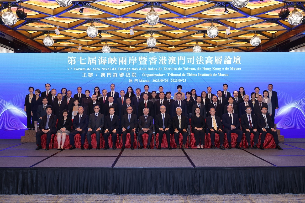 由澳門終審法院主辦的“第七屆海峽兩岸暨香港澳門司法高層論壇”於2023年9月20日至23日假澳門美高梅酒店大宴會廳舉行。本屆論壇以“公正與效率”為主題,並分設“實體正義與程序正義”、“案件之管理”、“典型案例之社會和法律效果”和“法官職業素養建設與遴選制度”等四個子議題。