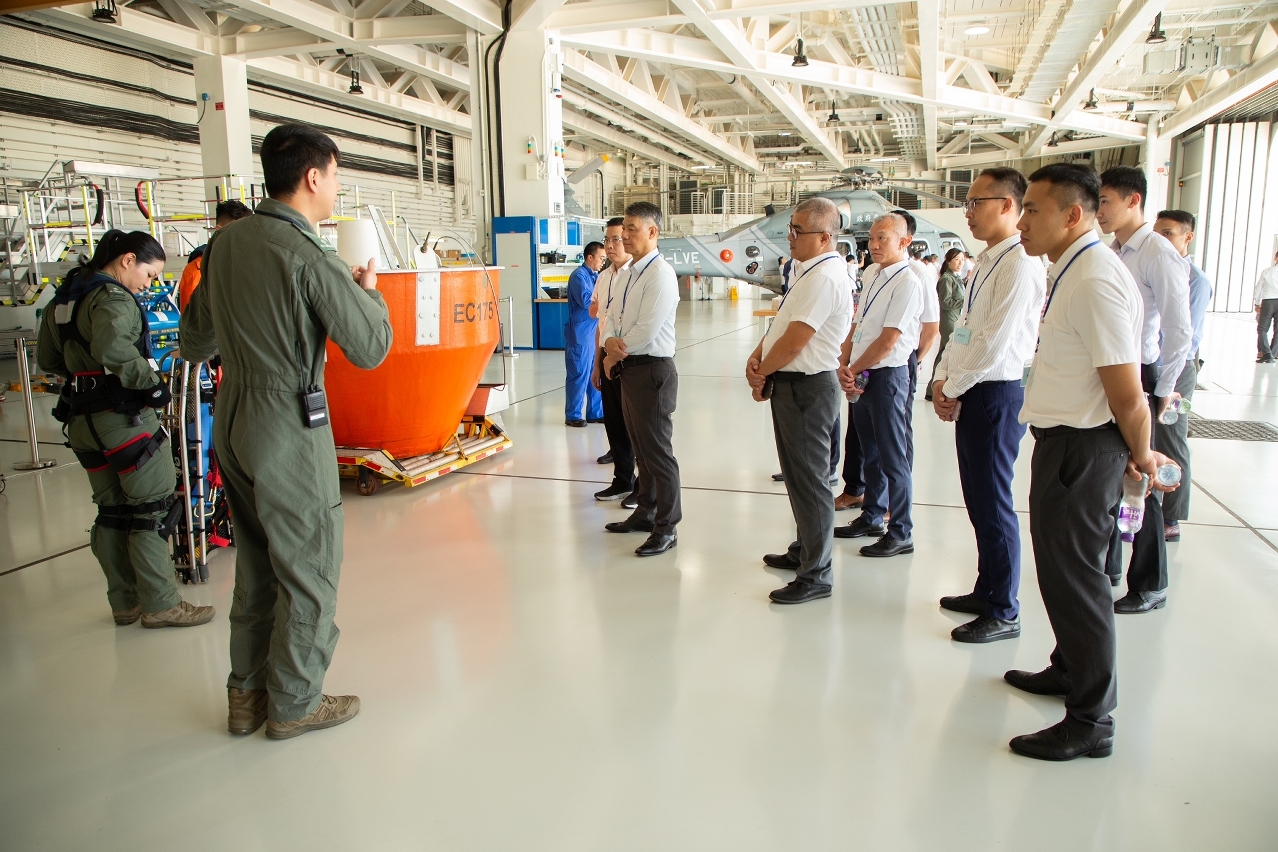 • 代表團參觀香港政府飛行服務隊,以及觀摩了消防處潛水基地模擬海上拯救訓練。