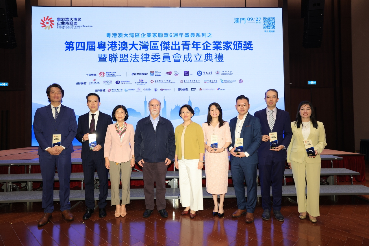 由粵港澳大灣區企業家聯盟主辦的第四屆粵港澳大灣區傑出青年企業家頒獎典禮今(27)日在香港、深圳、澳門三地同步舉行,澳門會場設於澳門大學。100位為大灣區建設作出傑出貢獻的青年企業家獲獎,當中14位來自澳門,包括六位澳大校友。