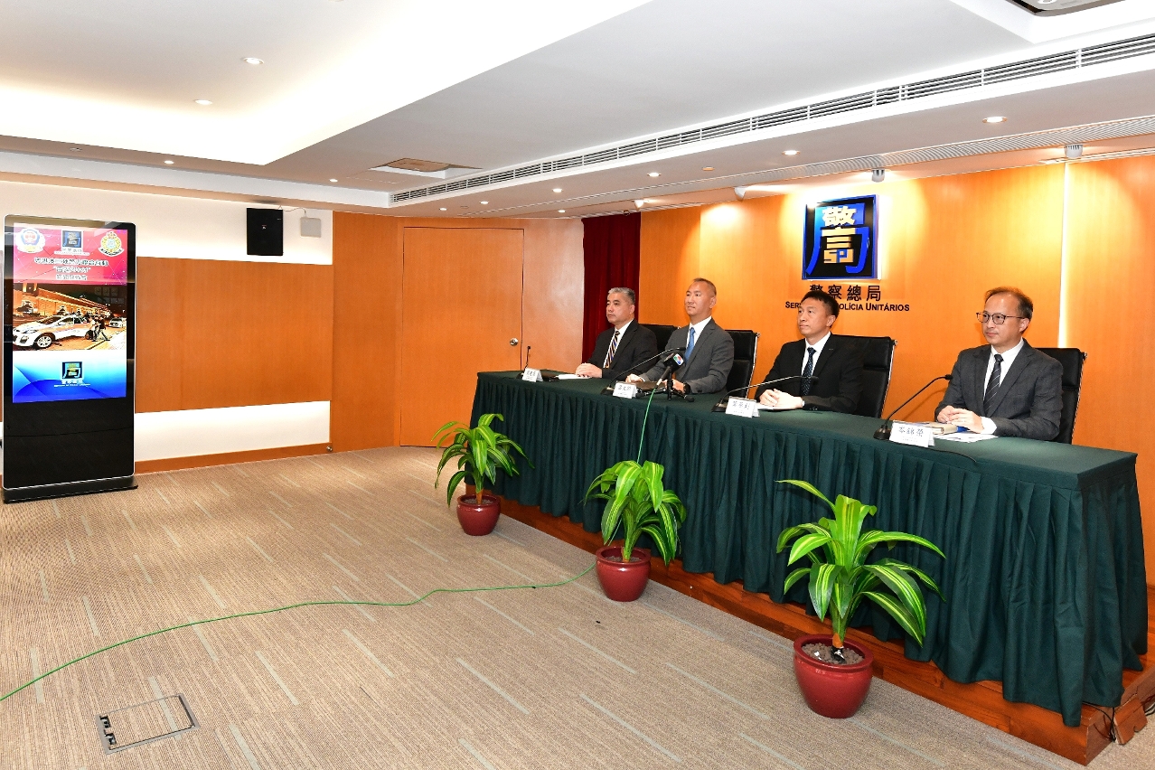 • 警察總局局長助理梁文照、澳門海關代助理關長葉華釗、治安警察局副局長梁慶康及司法警察局副局長岑錦榮出席發佈會,總結打擊成效。