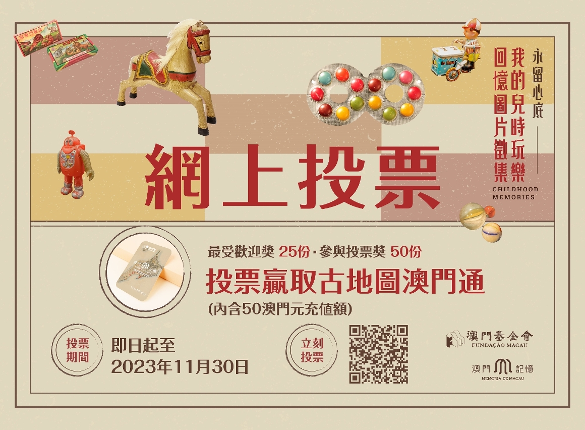 為與市民分享徵集成果,攜手傳承澳門大眾的兒時玩樂回憶,即日起於“澳門記憶”文史網 (www.MacauMemory.mo) 舉辦網上投票活動,並設獎項鼓勵市民大眾參與。