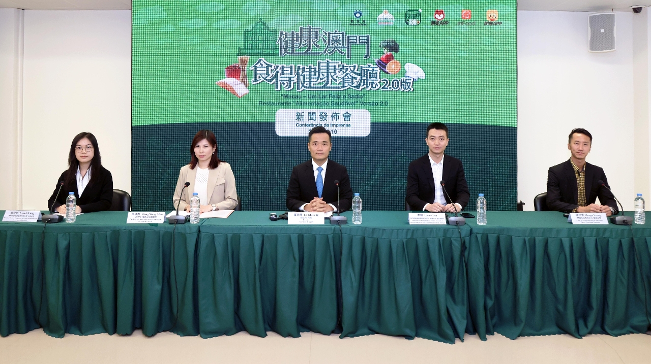 衛生局今(10)日聯同本澳三大外賣平台舉行新聞發佈會,公佈“健康澳門—食得健康餐廳2.0版”的詳情,共同推動健康飲食文化,推進健康澳門建設。出席是次新聞發佈會包括衛生局羅奕龍局長、疾病預防及控制中心健康促進處黃穎雯處長、澳門網絡傳媒發展有限公司及澳覓APP(“澳覓"手機應用程式)聯合創始人李勝先生、澳門智慧餐飲管理有限公司(“mFood"手機應用程式)市場總監龍秋竹女士及閃蜂科技有限公司(“閃蜂"手機應用程式)市場營銷部營銷主管楊祖望先生。