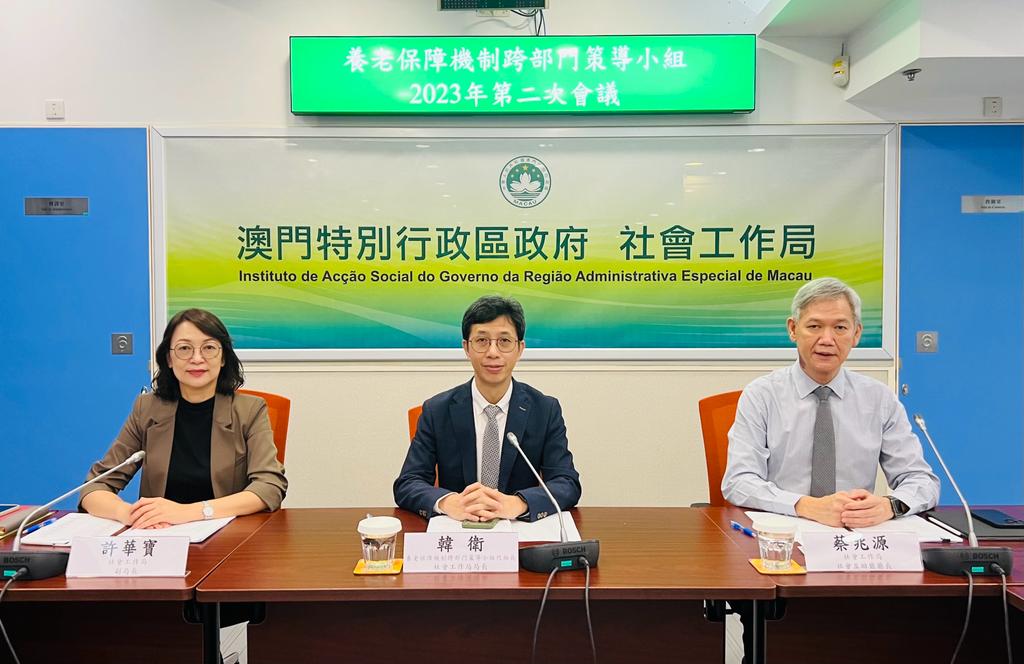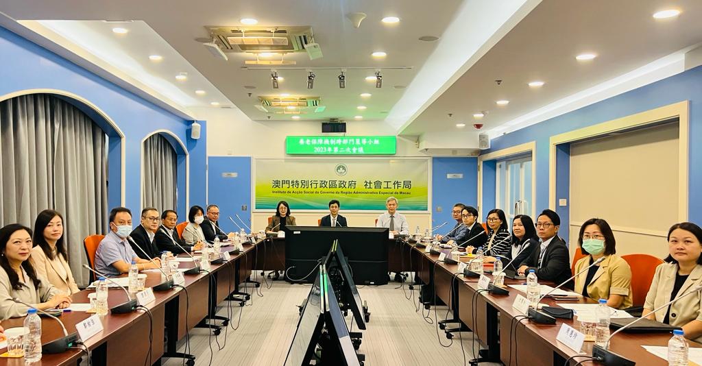 養老保障機制跨部門策導小組今(12)日假社會工作局會議室舉行本年度第二次會議,策導小組代組長、社會工作局韓衛局長主持會議。議程包括:“2016至2025年長者服務十年行動計劃”的工作進度及2024年相關規劃、離島醫療綜合體的基本情況與發展規劃、粵澳社會保障合作現況及相關工作經驗,以及政府長者公寓相關工作的開展情況等。