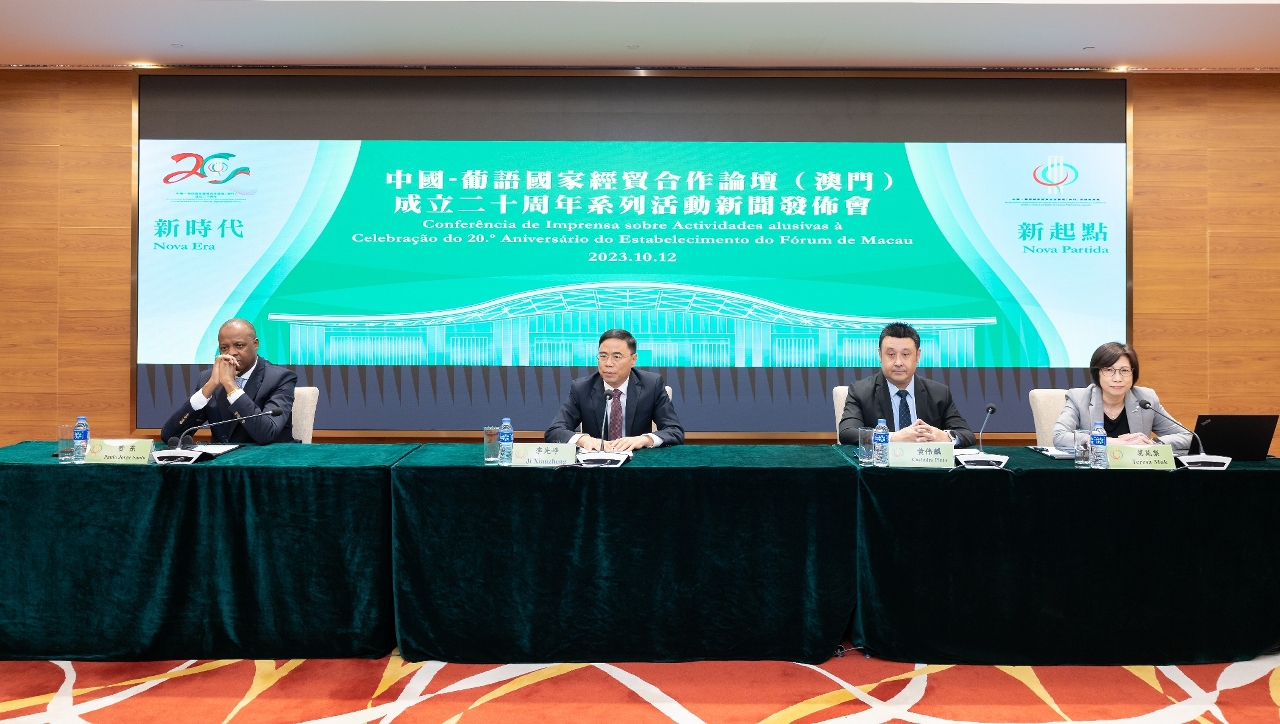 中葡論壇(澳門)成立二十周年系列活動新聞發佈會於10月12日下午在中葡綜合體舉行。中葡論壇常設秘書處季先峥秘書長、贊東副秘書長、黃偉麟副秘書長及輔助辦公室莫苑梨主任等出席。