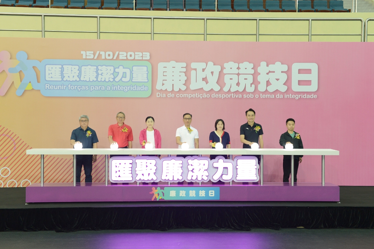 活動開幕式由廉政專員陳子勁、廉署助理專員歐陽湘和林燕生、廉政專員辦公室主任陳彥照,以及教育及青年發展局局長龔志明、體育局局長潘永權和教育及青年發展局副局長丁少雄共同主禮,寓意各主禮嘉賓與參賽青年齊心合力,為澳門社會注入廉潔力量。陳子勁致辭時表示,廉署今年以青年作為重點宣傳對象,舉辦競技日旨在從青年的興趣出發,以輕鬆、新穎形式宣揚廉潔及公平競技的訊息,讓青年進一步接觸廉政,鼓勵他們身體力行地支持廉政建設。