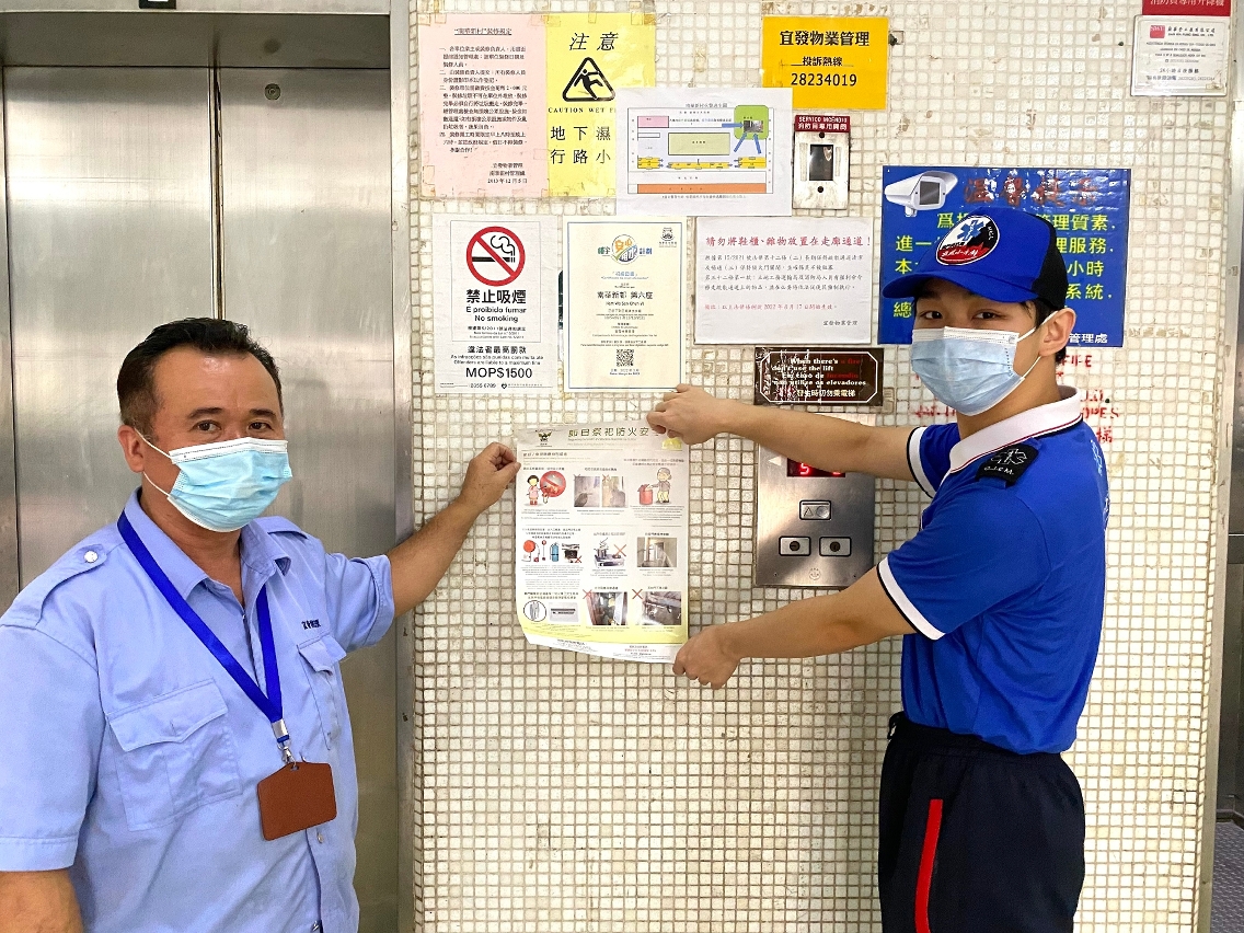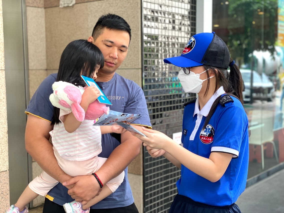 消防局人員與救護小先鋒一同向街上居民及商戶派發節日防火宣傳單張,各學員積極把握與居民接觸的機會,勇於嘗試向居民講解從培訓課程上學到的防火知識,尤其提醒居居於祭祀期間應注意火種處理,以及燃燒冥鏹時應遠離雜物和易燃物品等,藉此加強居民對重陽節防火安全的重視。