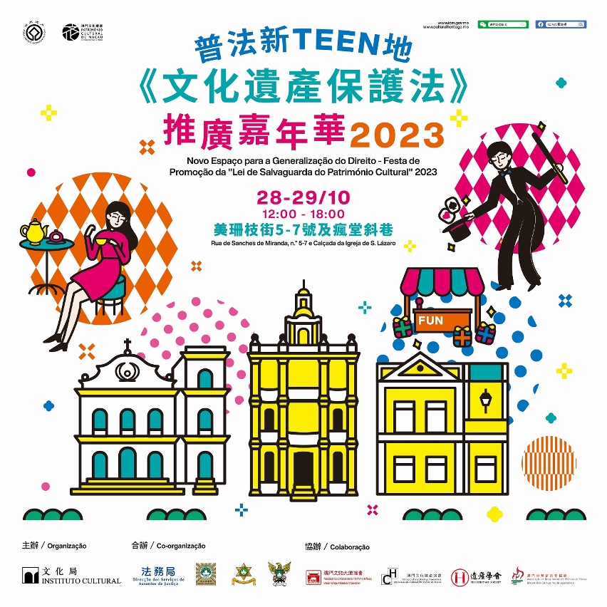 文化局將於10月28日及10月29日中午12時至下午6時在瘋堂斜巷及美珊枝街5-7號戶外空間舉辦“《文化遺產保護法》推廣嘉年華2023”,向公眾普及澳門文化遺產知識與《文化遺產保護法》。活動現場設有攤位遊戲、街頭表演及導賞活動等,免費入場,參加者完成指定數量攤位遊戲後可獲贈紀念品,歡迎市民到場參與。