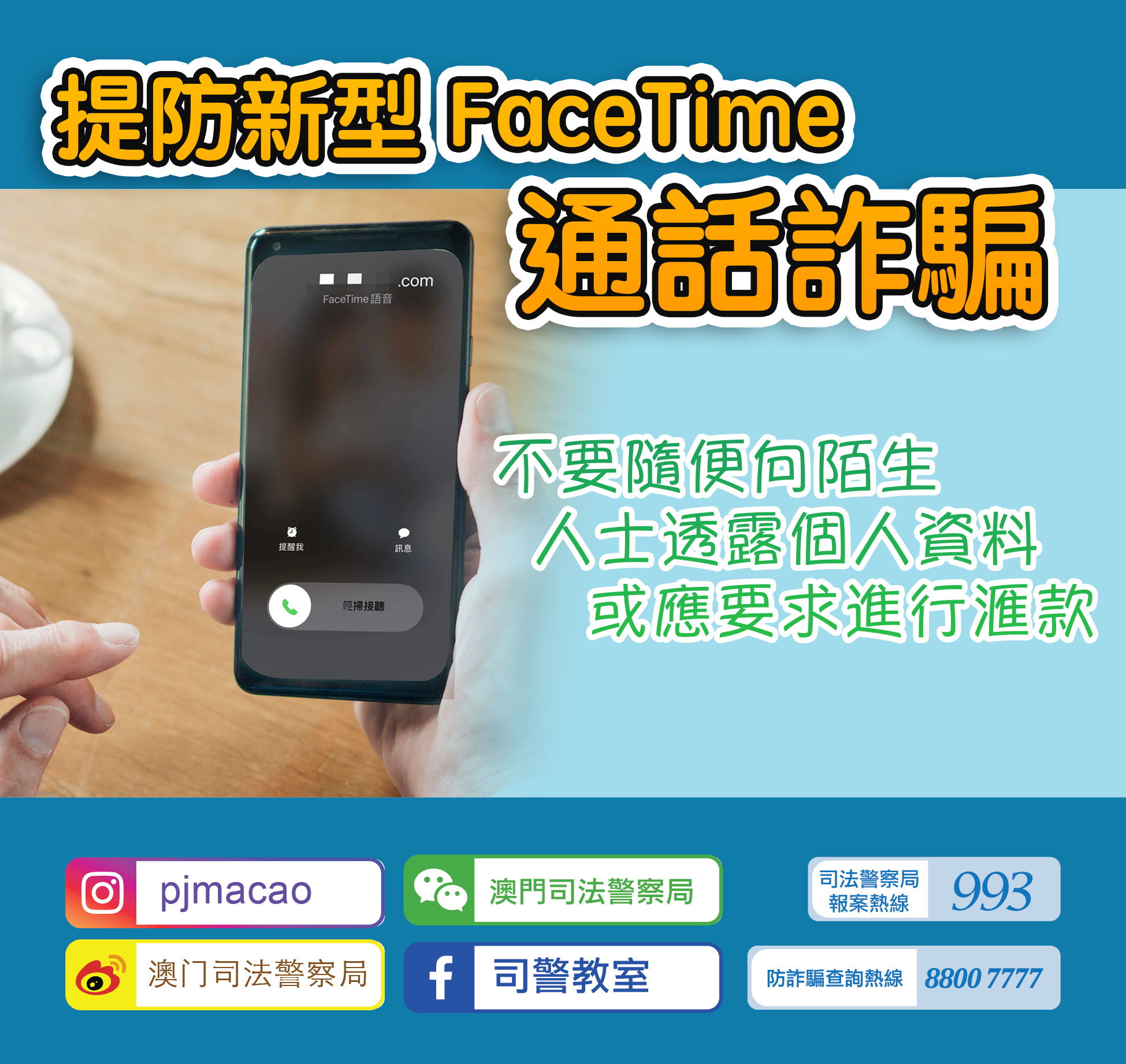 如有疑問,可致電司警局防詐騙查詢熱線88007777或報案熱線993。