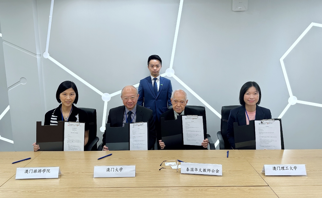 此外,訪問團亦前往泰國華文教師公會和泰國留學中國大學校友總會進行座談交流。泰國華文教師公會由泰國128所華文學校的中文教師組成,以推動當地華文教育發展為目標;泰國留學中國大學校友總會由當地畢業自中國各高校的校友組成,主要為促進泰中兩國的友誼和文化、教育等的交流合作。泰國華文教師公會主席羅宗正、泰國留學中國大學校友總會主席丁佩佩均對訪問團到來表示歡迎,雙方就兩地教育交流、學生升學情況等深入探討。澳門7所高校於此行分別與泰國華文教師公會簽署了合作協議,以加強澳門高校面向泰國學生的宣傳,為其提供更全面的升學資訊,並支持學生到澳門升學。