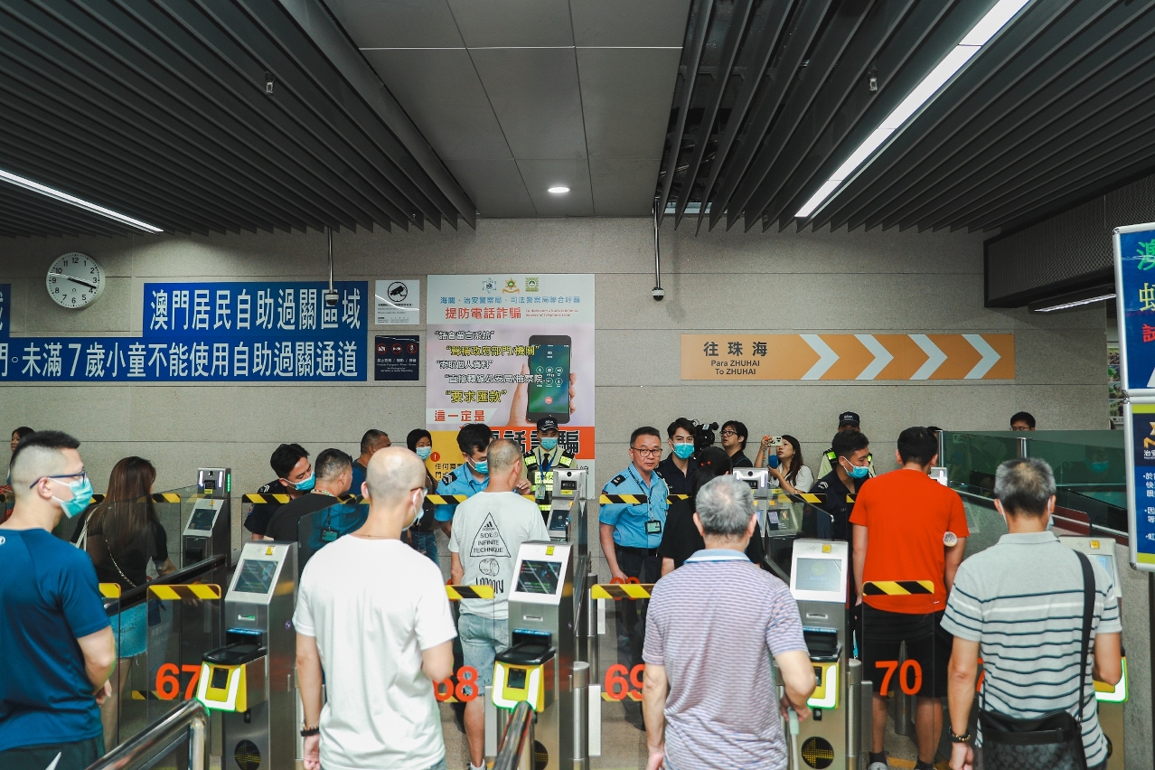 治安警察局積極發展智慧警務,不斷推動口岸通關便利化,為提升通關體驗,治安警察局在澳門保安部隊事務局的協助下於本年第二季在關閘口岸裝設10條“虹膜自助通道”,分別設於離境大堂及入境大堂各5條。