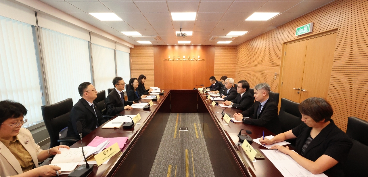 藥監局蔡炳祥局長向代表團介紹了藥監局的職能與架構,並感謝廣州市市場監督管理局一直以來對澳門藥監工作尤其是藥物檢驗和人力組建方面的支持。蔡局長表示,藥監局在對藥物質量及安全把關的同時,也積極助力產業發展。藥物檢驗及信息通報是藥物風險管理工作的一部分,完善的藥檢體系、市場監測以及監管機構間的信息互通,有助防止偽劣藥物在市場流通,保障公眾用藥安全。蔡局長期望日後能進一步深化兩地藥物市場監管合作,共同打擊偽劣藥,促進兩地藥監工作更好發展。此外,《澳門特別行政區經濟和社會發展第二個五年規劃(2021-2025)》中明確提出要促進區域合作,藥監局鼓勵和支持澳門企業借助廣州市藥檢所的技術力量,助力發展中醫藥大健康產業。