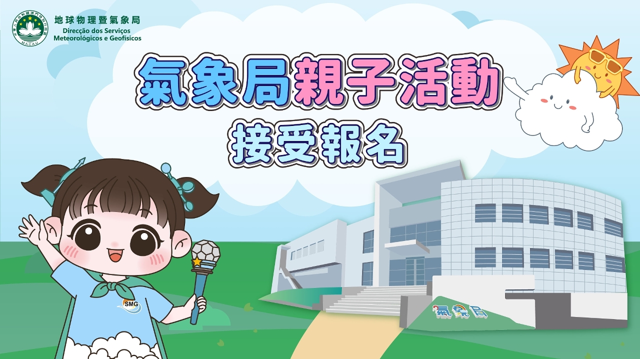 為持續推動多元化的氣象科普教育,地球物理暨氣象局將於11月舉辦“氣象FUN識親子遊”及“遊氣象 樂探索”兩項親子活動。活動旨在帶領參加者開啓一趟探索氣象科學樂趣,感受氣象科學魅力的親子旅程,並藉有趣互動的氣象之旅,加深參加者對本澳氣象服務及運作的瞭解。兩項活動由即日(1日)起至11月5日接受網上報名,參加者於活動結束後可獲精美紀念品乙份。