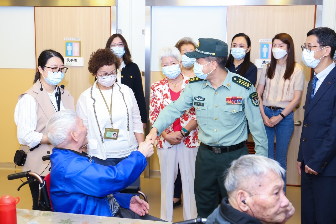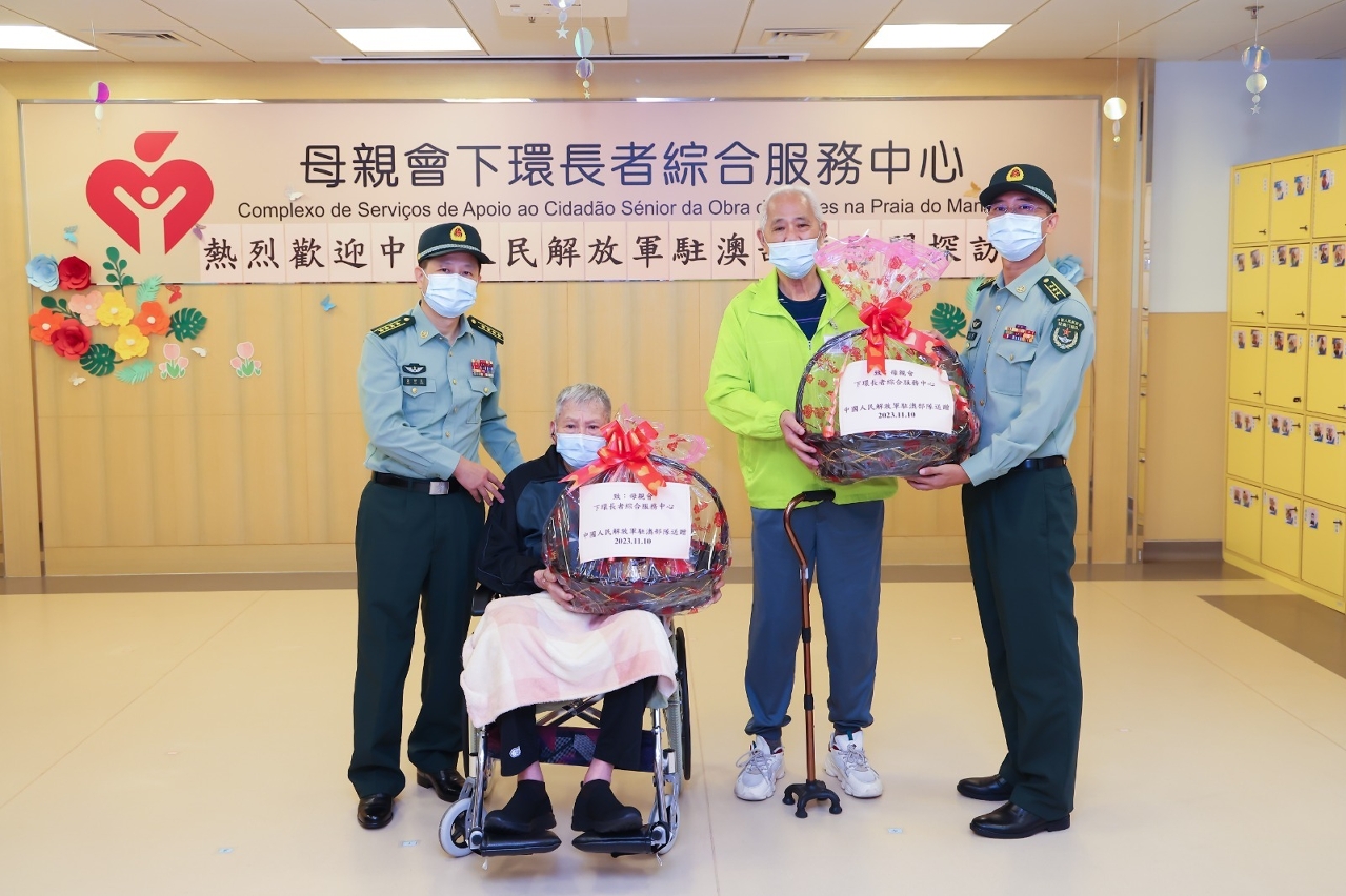為感謝長者對本澳社會的貢獻,傳承敬老崇孝的社會價值,中國人民解放軍駐澳門部隊政治工作部主任高好良大校與部分官兵代表,在澳門特別行政區政府社會工作局韓衛局長的陪同下,於11月10日上午到母親會下環長者綜合服務中心慰問長者。