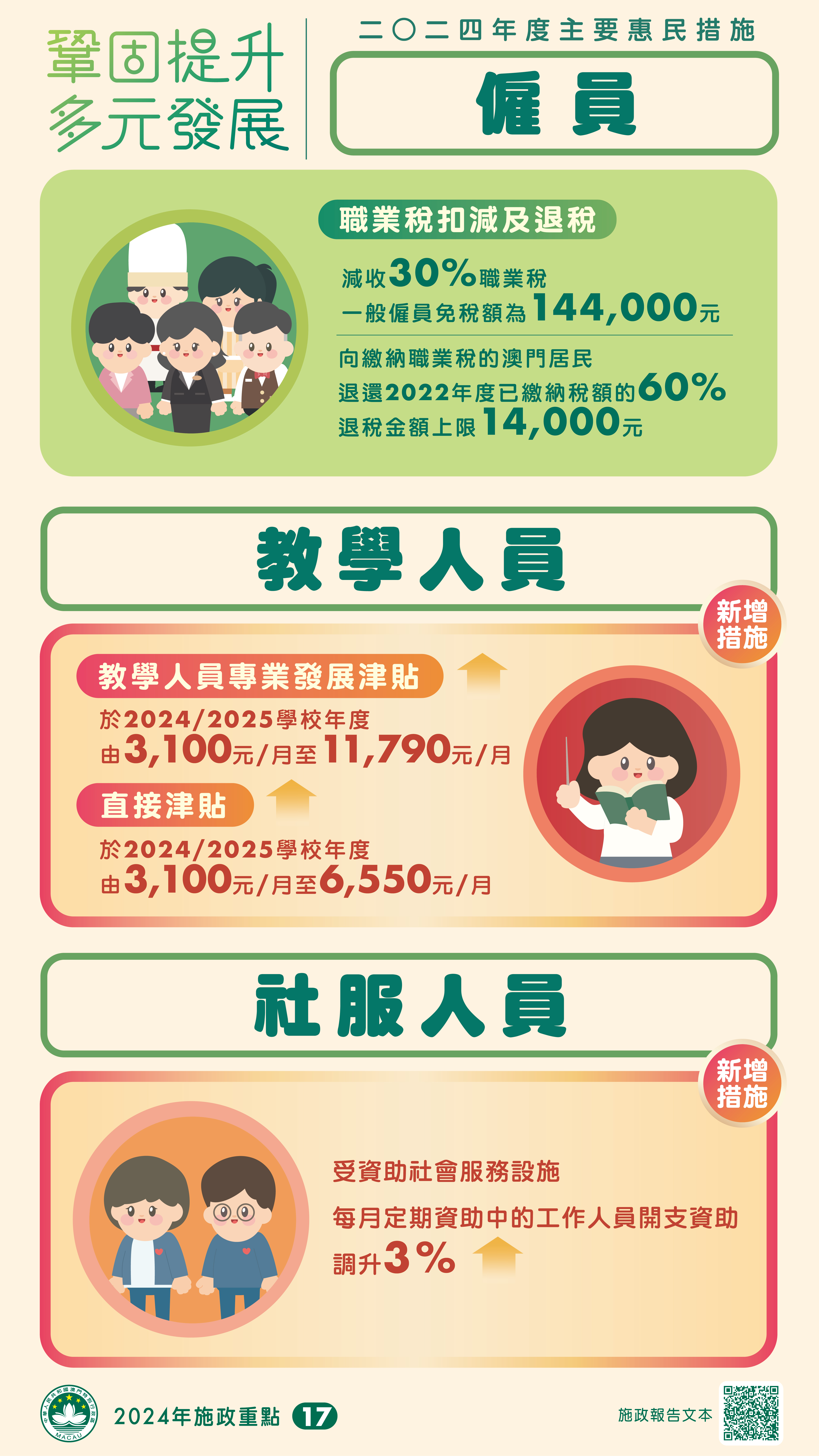 2024年度主要惠民措施 – 僱員、教學人員、社服人員