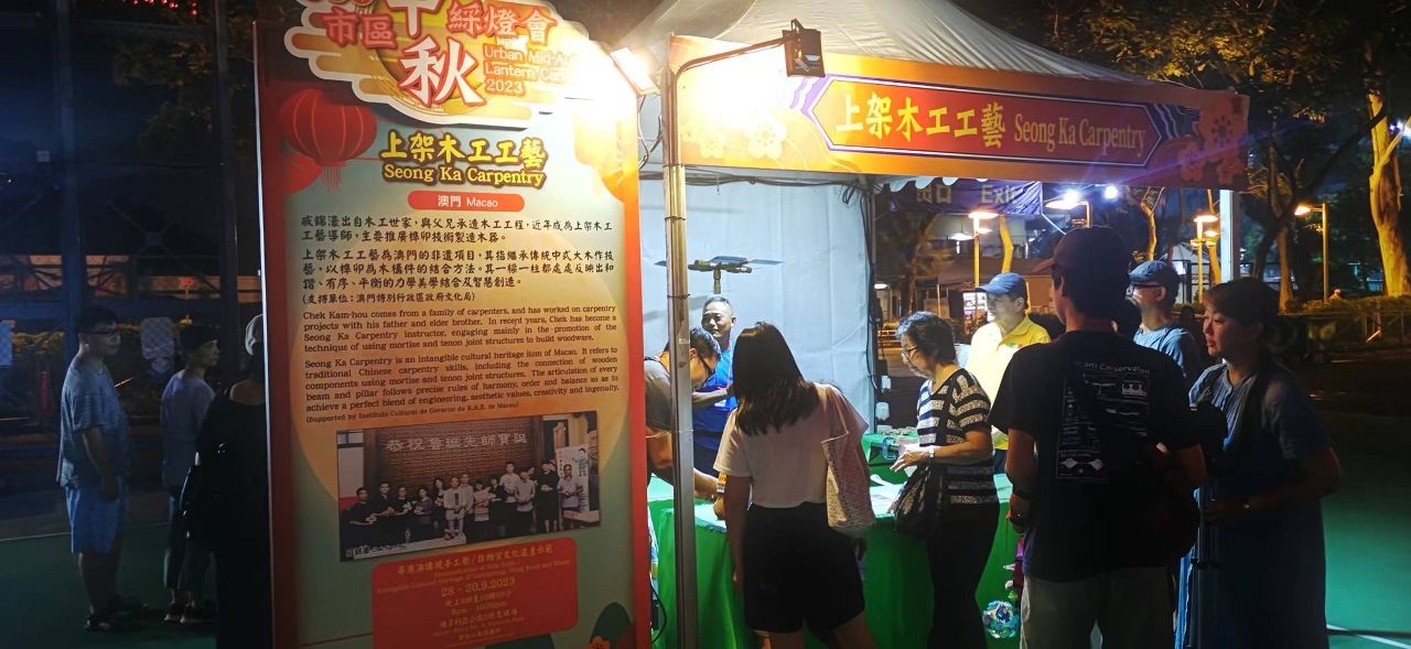 今年9月至11月,澳門共有8個非遺項目分別參與香港、珠海斗門及東莞舉辦的大型活動,上架木工工藝、瓷微刻工藝參與於香港舉辦的“癸卯年(2023)中秋綵燈會”,展示榫卯工藝、魯班鎖及題材各異的瓷微刻作品等;葡萄牙瓷磚畫製作工藝、中式裙褂製作技藝、八音鑼鼓、土生土語話劇及土生葡人美食烹飪技藝,參與珠海斗門“2023粵港澳大灣區非物質文化遺產交流大會”,其中澳門設計的中式裙褂更以時裝走秀形式呈現,大會由廣東省文化和旅遊廳、珠海市人民政府、香港文化體育及旅遊局及澳門文化局共同舉辦;龍鬚糖製作技藝參與“2023年全國文採會東莞站——2023粵港澳大灣區公共文化和旅遊產品(東莞)採購會”活動,更首次於當地開設技藝體驗課。活動吸引了各地居民參與,提升了澳門非遺的知名度。