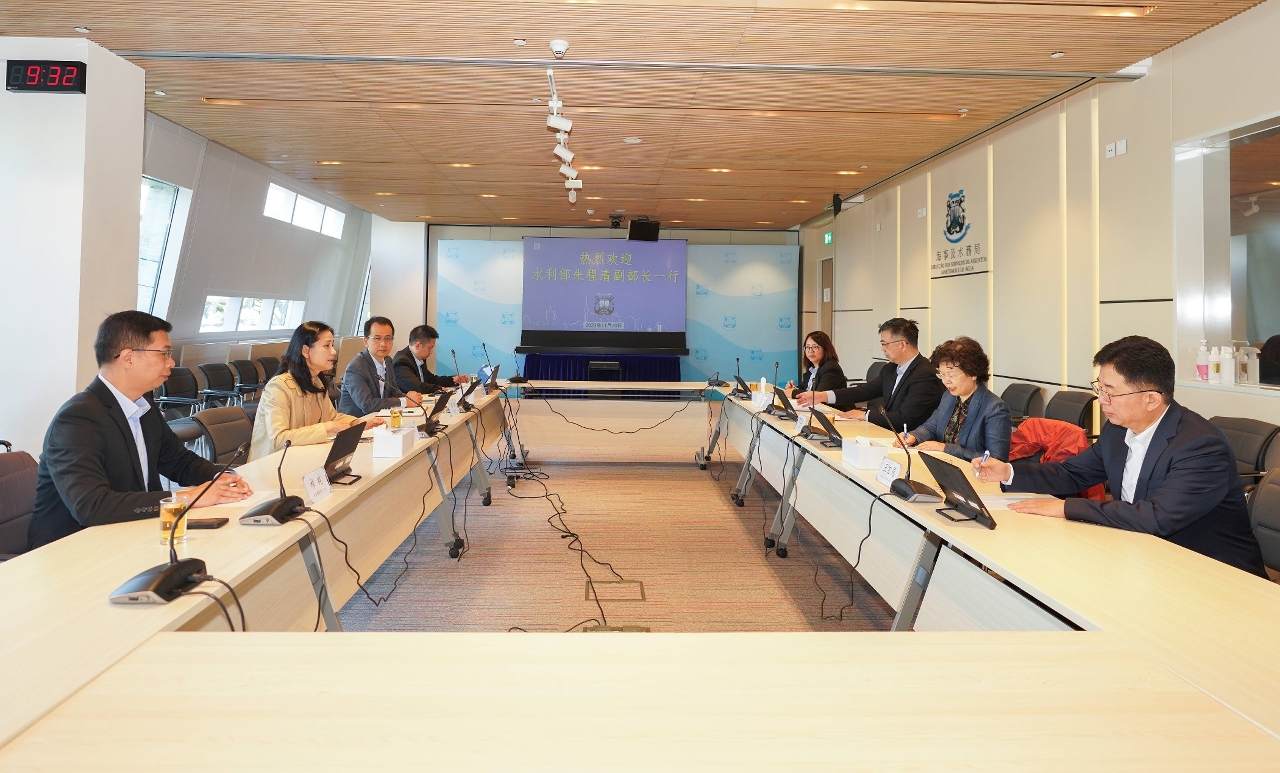 為推動粵港澳大灣區在水利領域的交流與合作,水利部國際合作與科技司、香港發展局和澳門海事及水務局合辦“粵港澳大灣區水利科技交流會”,創建平台予水利部門、供水單位和相關科技企業共同探討水利和水資源管理的發展趨勢。海事局藉著國家水利部副部長朱程清一行來澳交流,雙方召開水利工作會議,並考察了本澳的供水設施、海岸線和用海情況。