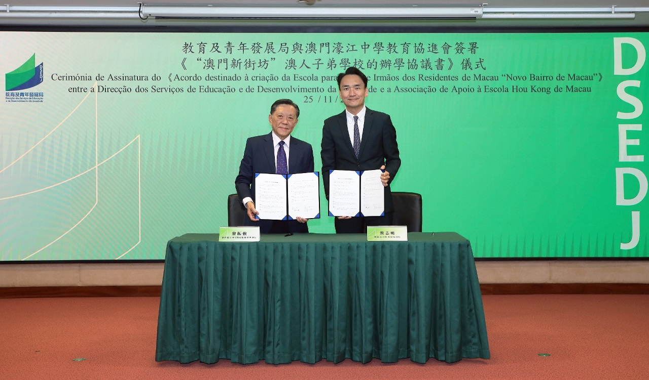 簽署儀式於2023年11月25日在教青局舉行,由教青局局長龔志明與澳門濠江中學教育協進會理事長黎振強共同簽署協議。