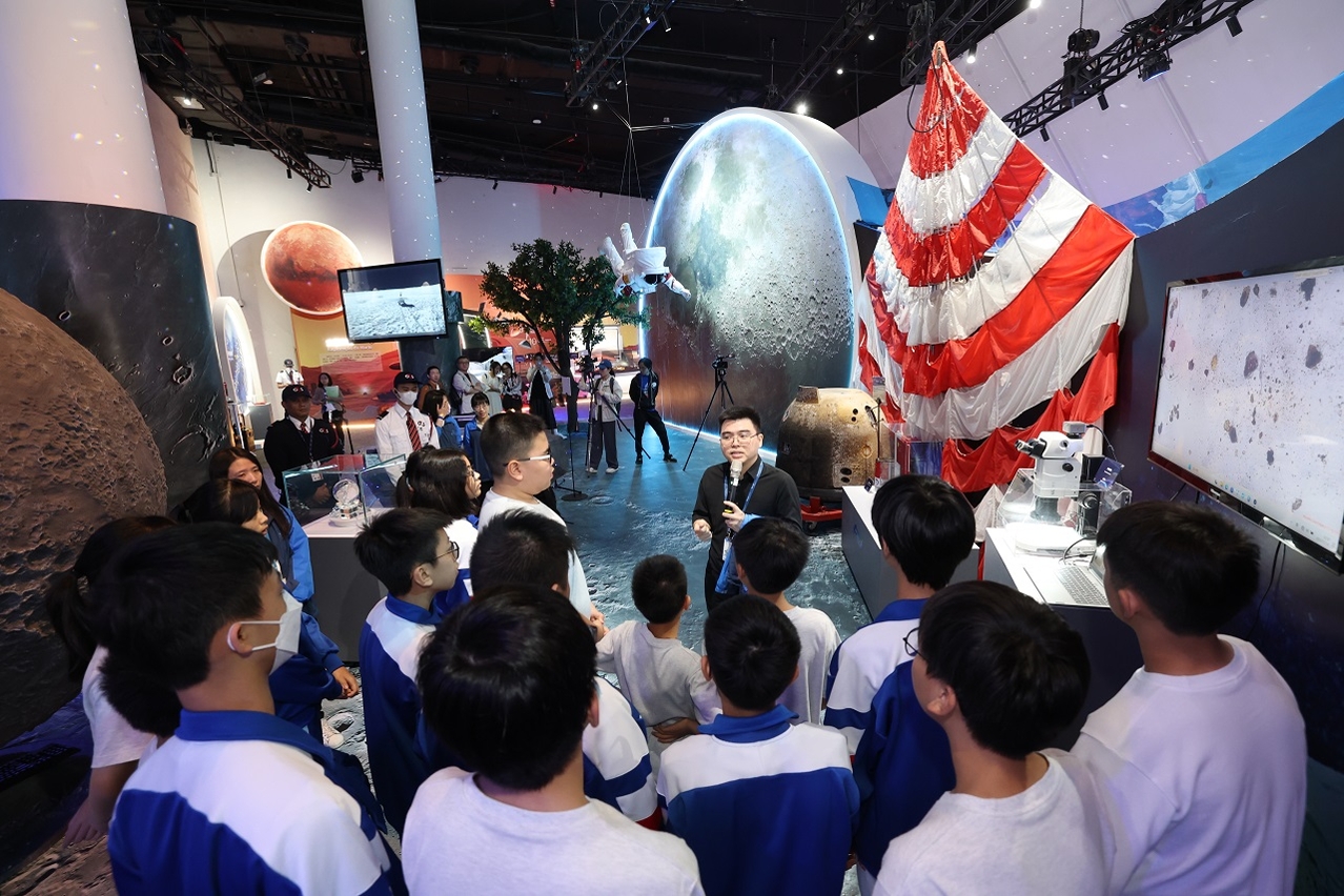 為了讓澳門學生有更多機會認識航天航海知識,展覽特設學校導賞服務,為學生提供生動有趣的學習場景,當中實物展示、互動裝置及虛擬火星車駕駛體驗等深受學生歡迎。參觀學生表示,是次可近距離看到月壤和“嫦娥五號”返回器實物,增加了對中國載人航天發展的認識;另有學生表示對展覽中的互動裝置最感興趣,可模擬潛航員通過聲學通信系統與無線電等技術,與航天員進行了“海天對話”。